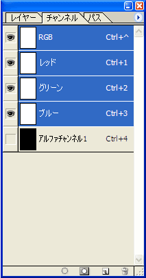 そうしたらRGBのところをクリックしてアルファチャンネル以外を全て選択状態にして