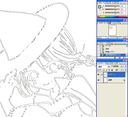 出来たら試しに背景レイヤーを見えなくして線が抽出されたか確認。