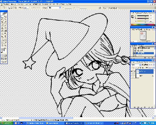 線画が完成したらグレースケール300dpiで取り込んでPhotoshop CSで開きます
